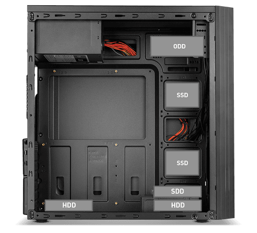 - Capacidade para instalar até 3 SSD 2.5” e 2 HDD 3.5′;’