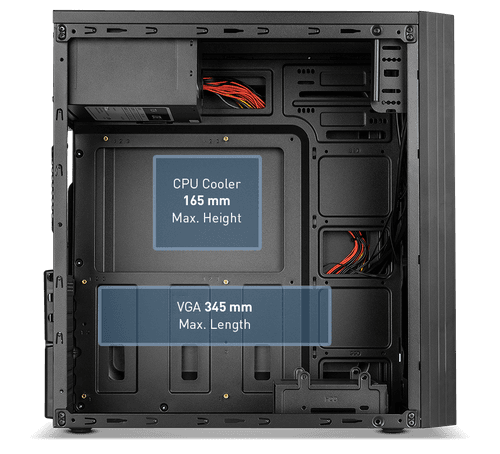 - Compatível com placas gráficas de até 345 mm.